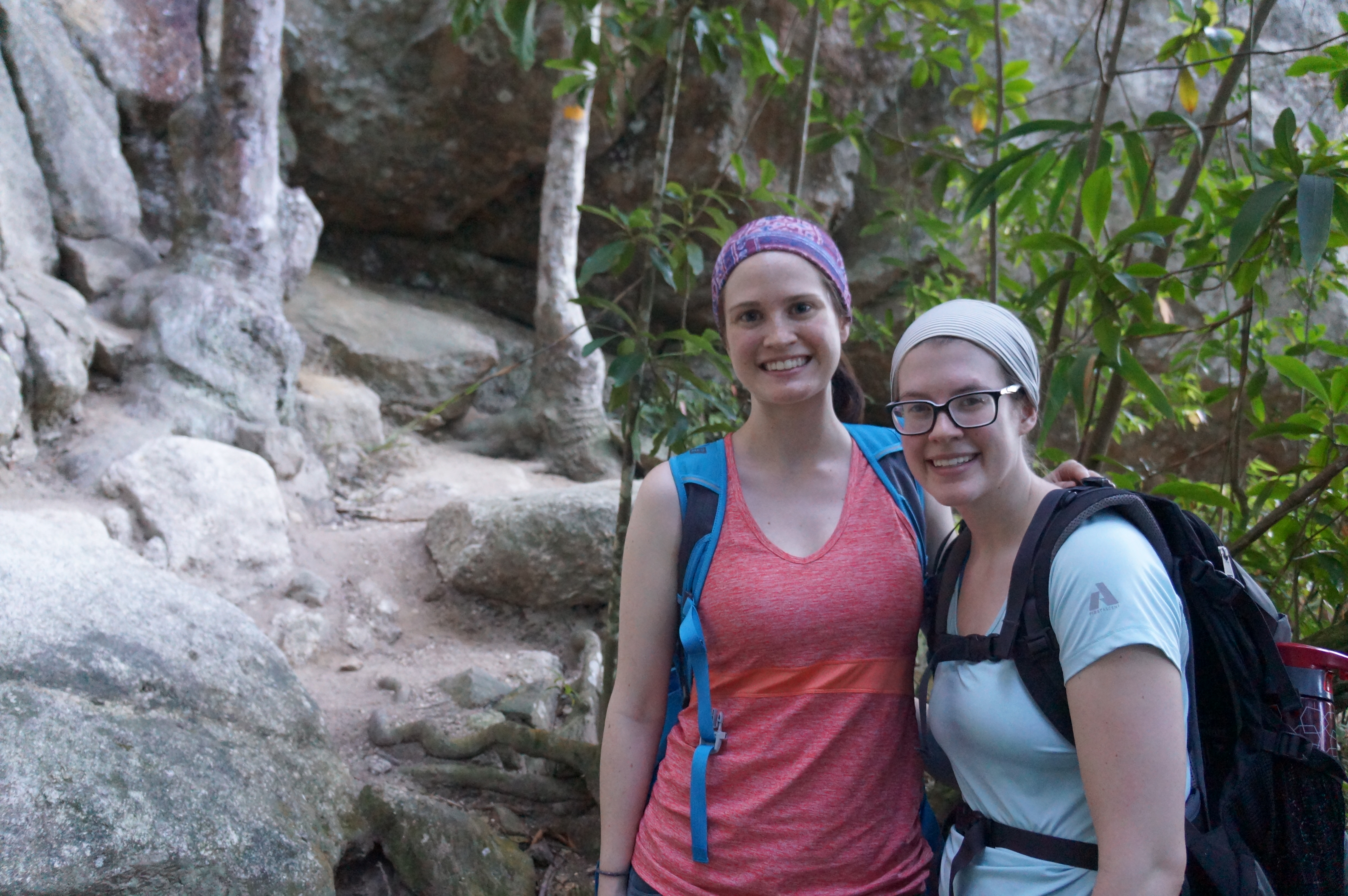 We opted to take the steps. It was a pretty steep and scary climb and Ed told us to strictly watch our feet as we went, so when we finally stopped and he told us to turn around, we were privileged to the most amazing view of Rio! We could see the city sprawled out beneath us, with Guanabara bay and the city of Niteroi behind it. We ate our lunch at the top while enjoying the beautiful view. We were literally above the clouds, so the other side of the peak was clouded over when we reached the top. Fortunately, they cleared out just before we left and we had another incredible view of the rolling hills and peaks of Parque da Tijuca, all the way out to the Atlantic Ocean.