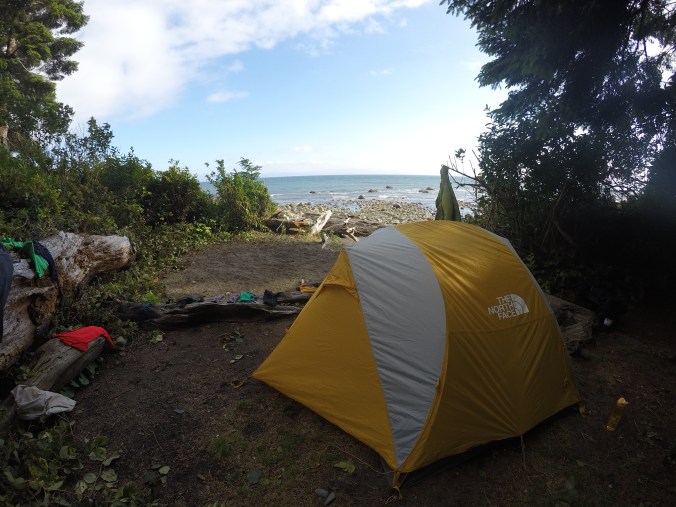 There were only 3 other people at the campsite, so again, we had tons of space to ourselves and found a nice place to set up our tent. Since we’d arrived at camp 2.5 hours earlier than the other 2 days, we had more time to relax and we played a few games of cards. It was a little windier on Bear Beach, but we had a great view of the ocean and the clouds had cleared off entirely during the day, so we stayed up watching the tide slowly moves its way up the beach all evening.