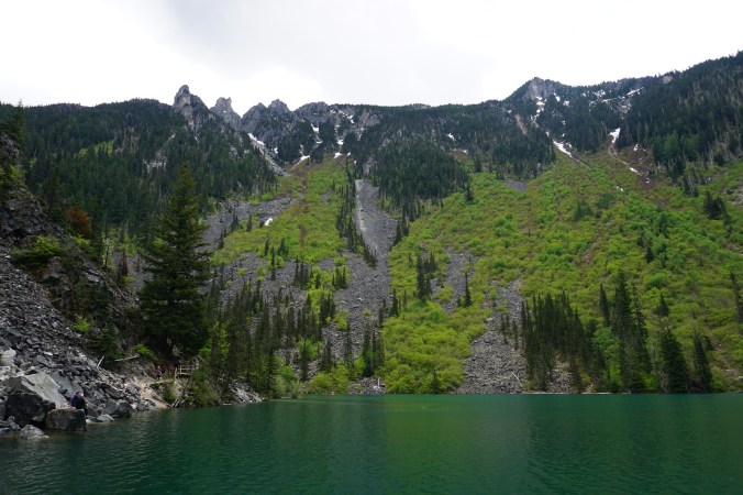 Lindeman Lake is a great hike for beginners because like I said, it’s challenging, but it’s short. It’s a great early season hike because it’s at a low elevation, so the snow melts pretty fast, and you’ll get a great work-out on the hike to the top. It can get pretty busy (like most hikes), so I’d suggest getting to the parking lot early. The first time I visited, I was actually car camping in the provincial park, so this was a perfect easy day hike for us. One tip, the campsite area where the trail ends gets very little sun and while it provides a nice view, there are better lake views. If the water level is low enough, you can cross the logs at the river outlet to scramble over the rocks on the other side of the lake. But my recommendation would be to follow the trail at the lake edge back into the trees for another kilometre until you arrive at the far end of the lake. There’s a rock slide at the far end with lots of big rocks to eat your lunch on while admiring the view. In my opinion, this is the best view of the lake and it’s a great place to go swimming (which I’ve done twice… in May. It was really cold!)