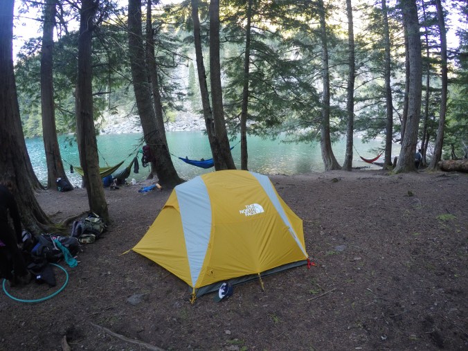 Both campsites are first come, first serve. I’ve only ever camped there on the May long weekend and it’s always been busy, but we’ve always managed to get a spot. I expect it’s probably a little busier later in the summer though. I love the Lindeman Lake campsite because it’s such a short hike, so we brought up a ton of extra fun gear like hammocks and frisbees and those fancy inflatable couch things. Greendrop Lake is less busy than Lindeman, but I personally didn’t like that campsite. There’s not really a great view of Greendrop Lake and because it’s higher elevation than Lindeman Lake, it was a lot colder. Granted, I visited in May, which is really early, but there was still snow on the ground walking up to Greendrop at this time and the trail was a little more challenging to follow. Overall, I’d recommend camping at Lindeman or visiting as a day hike.