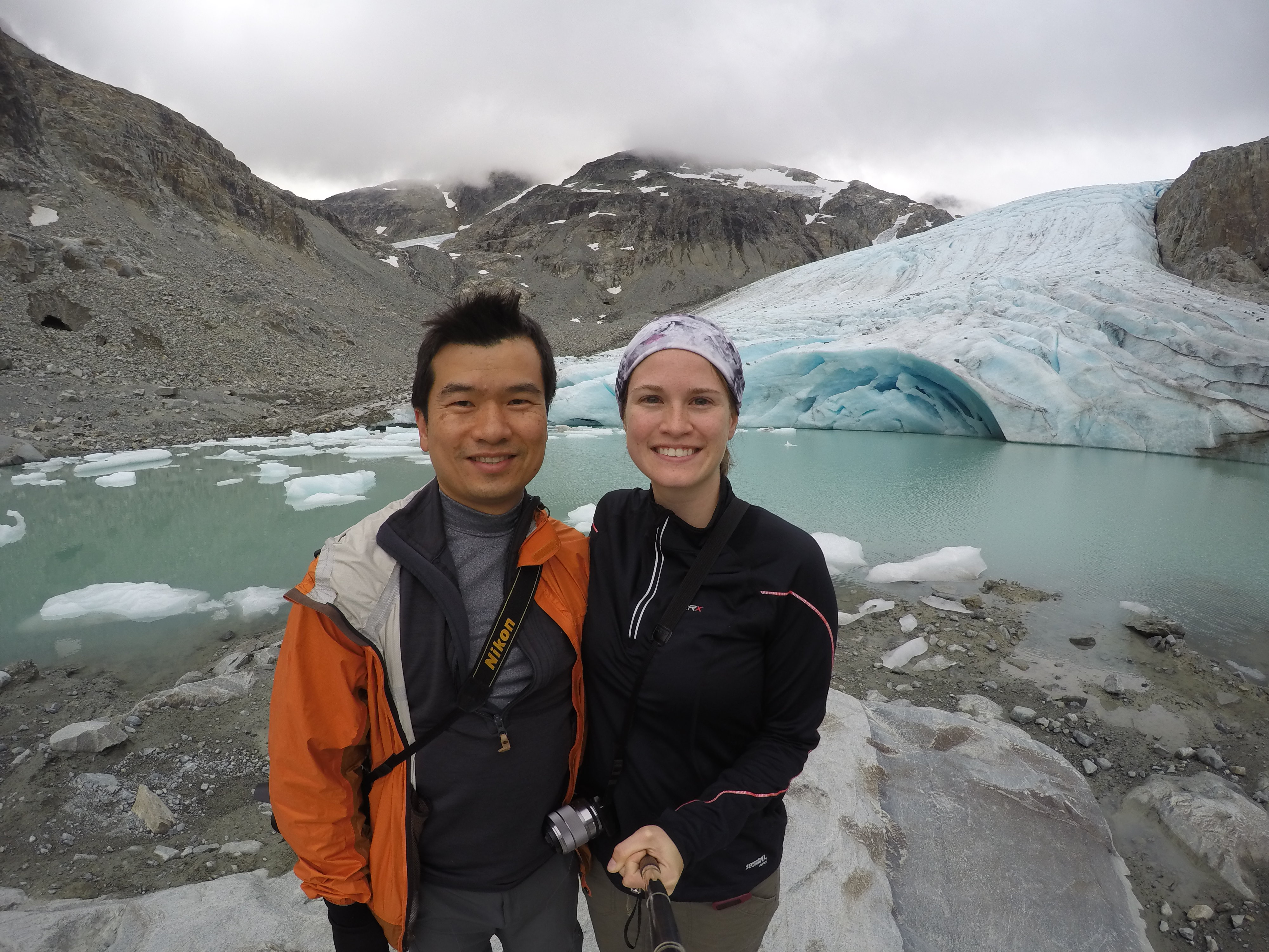 We did explore to the glacier though. If you walk around to the head of the lake, you can see the Wedgemount glacier. I’m sure it looks different every year depending on how the ice changes and melts, but the year we visited had left another lake at the base of the glacier with lots of bergy bits (real technical term – I’m a Newfoundlander, I would know) floating around. The glacier is huge and looks misleading in pictures, but Brandon got a few great photos of me standing at the base of the glacier that really put the size in perspective.
