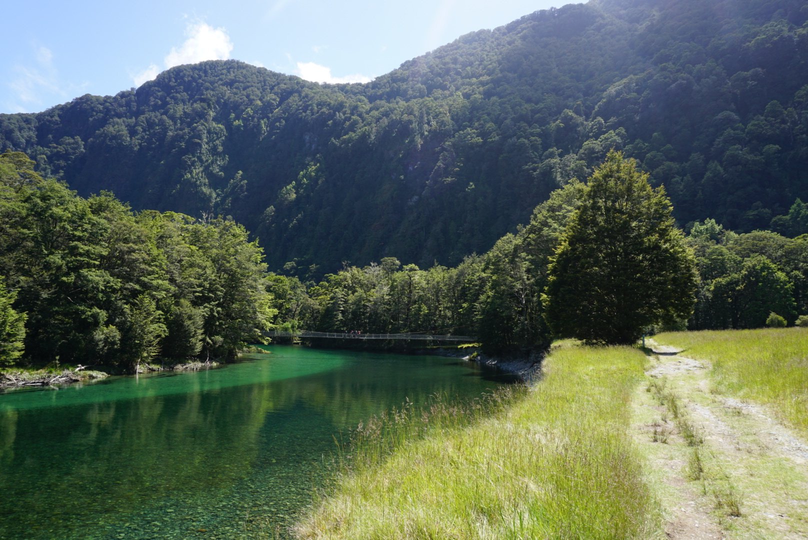 The first day is an easy one, you take an hour boat ride to the trailhead and then hike about 5km along the Clinton River to Clinton Hut. This was our best weather day on the track – it was a gorgeous, sunny, blue sky day – so we took our time and really enjoyed the beautiful river views. There’s a short wetland walk near the hut and we had lunch along the river. Since it was a beautiful hot day, I couldn’t resist going in the river. It was absolutely freezing cold, like the kind of cold that numbs your feet immediately and makes it hard to walk, but refreshing on the muscles.