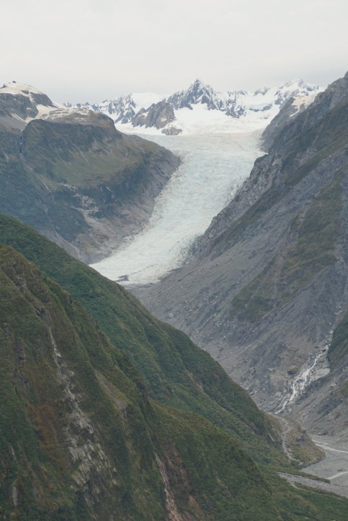 Our plan was to heli hike Fox Glacier on New Years Eve. There’s two glaciers open for tourism along the West Coast of the South Island: Fox Glacier and Franz Josef Glacier. Both are only accessible by helicopter and offer a wide range of tourist activities on the glacier. So we signed up for a half day hike on Fox Glacier. We had pretty mixed weather throughout the trip, but we got a few really nice warm days in Queenstown and the forecast indicated that would continue into the New Year, so we were optimistic about the hike. But the closer we got to Fox Glacier, the less sure we were that the hike would go ahead. It was quite nice looking out towards the ocean, but the clouds were all clinging to the mountains and you couldn’t see any of the peaks.