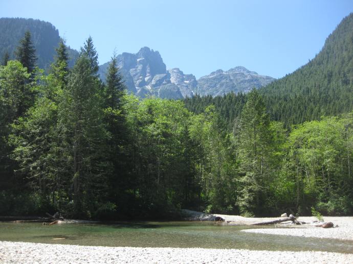 High Falls Creek is one of two hikes on this list that can be found along the Squamish River. It’s a more challenging hike than some of the others, but is great for Spring when the rivers are flowing at high capacity. The trailhead is located approximately 26km up Squamish Valley Road. The hike can be done as an out and back, but if you want to make it a bit longer, you can turn it into a loop hike by continuing up to Branch 200 FSR and hiking back along the road. The trail to High Falls is a bit technical, with some scrambling over rocky sections, so make sure to go on a dry day. It’s 1km each way to High Falls Creek, but if you do the loop, it’s 9km with 500m of elevation gain.