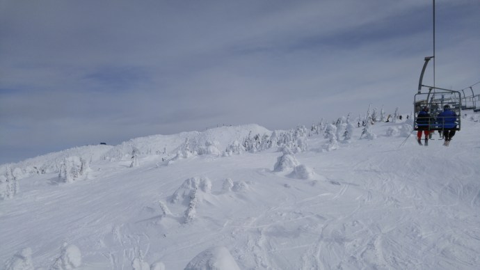 We spent the first day hanging out on the Crystal Bowl and Sunburst lifts. I liked the Crystal Bowl because the snow was a lot better on top of the mountain, but visibility was quite poor. Sunburst had better visibility, but not great snow. it was still a fun day, but on our second day we hit the other side of the mountain on the Morrisey Chair and I personally had a lot more fun on that side. It took me a while, but I’ve finally learned that depending what side of the mountain you ski on, conditions can be totally different because of the direction of the sun. Morrisey Chair ended up being a lot nicer than the other side of the mountain because the sun was on it in the morning and softened up the ice from the night before.