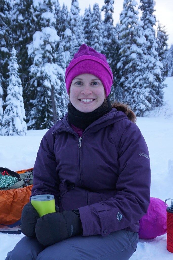 We did encounter one odd thing on the trail that I wanted to bring up. When we were hiking along, we saw that someone had written “help” in the snow. It was right at the point where the previous tracks had stopped (where we started breaking our own trail), so we assume the individual turned around and went back. We did search around the area for anything suspicious and blew our whistle and did some voice calls, but didn’t find anything. We reported it at the resort before we left and they hadn’t received any missing person reports, so we think it was probably someone just messing around. Maybe it wasn’t, but something to think about when you are in the backcountry and what kind of message you are leaving for others.
